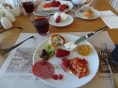 We ate breakfast downstairs and it was wonderful. There was fresh fruit, yogurt, eggs, cereal, excellent cheeses, olives, tomatoes, cucumbers, honey, jams, meats, pastries, and even cream of mushroom soup. It blows any continental breakfast at the local Days Inn out of the water. We are partial to Mediterranean food though so maybe that helps.